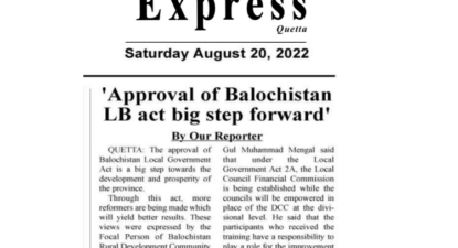 (16-17/08/2022) DC Training Course Topic 4 The GoB Community Led Local Governance Policy & Balochistan Local Government Act Reforms