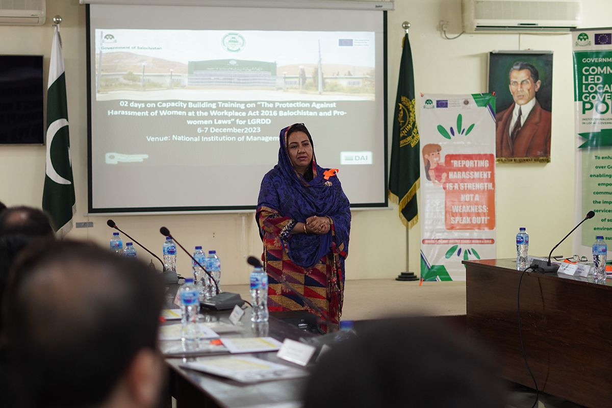 (06-07/12/2023) 2 Days Capacity Building Training on “The Protection Against Harassment of Women at the Workplace Act 2016 Balochistan and Pro-Women Laws” for LGRDD Provincial Staff