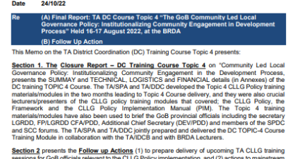 TA District Coordination Training Topic 4 Report